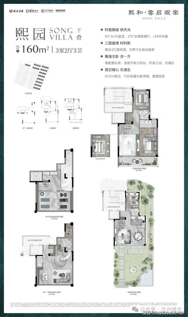 项目在景观打造上,缩移了一座苏州最古老的园林“沧浪亭”,制造空间差异化,既有竖向的别墅空间体验,又有大平层的平面开间尺度感。