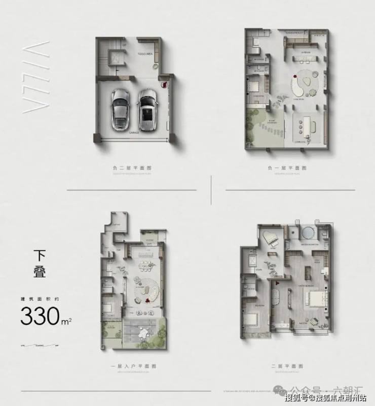 建面约330㎡下叠,共4层,可南北入户、同时地下二层带独立车库客直接入户,一层带花园。