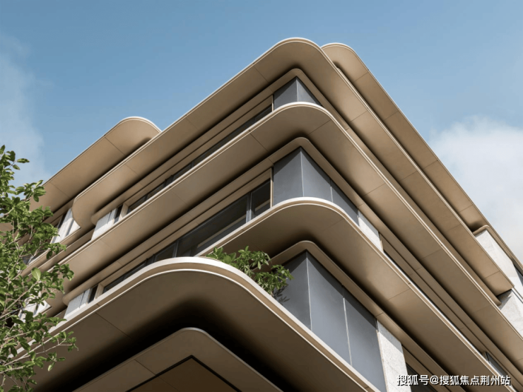 打破了传统立面单调、静止的设计范式,通过多层次的弧形曲面,营造出一种动态生长、与环境及光线共舞的灵动形态。同时,金属铝板、石材与玻璃等材质的精妙搭配,点、线、面的和谐统一,共同塑造出兼具视觉冲击力与触感温度的外立面美学。
