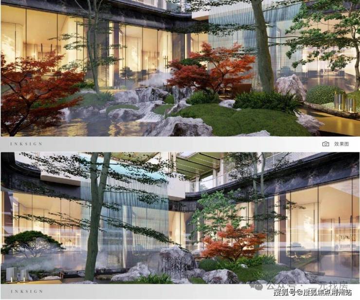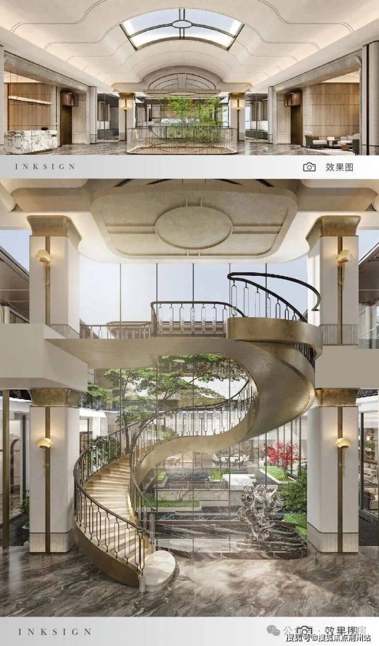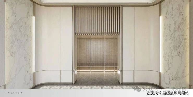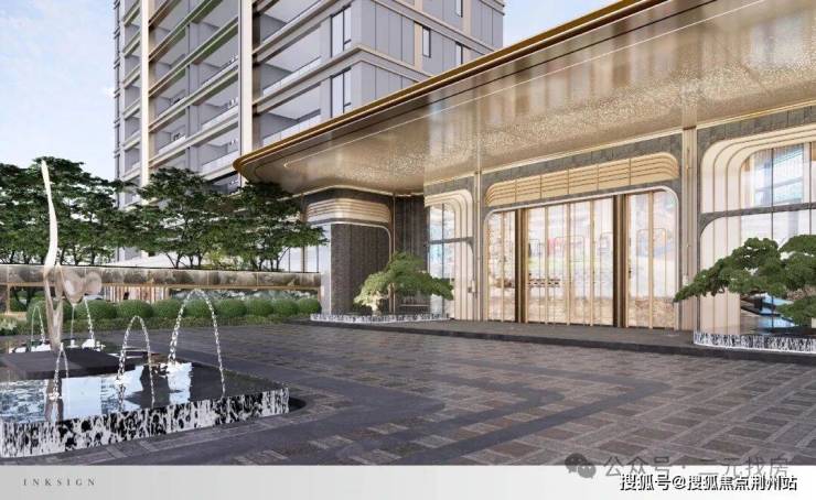 一方砚的迎宾大门,尺寸为约47m宽×约6.7m高(这个数据算中上),搭配星级酒店式环岛落客区,让150万以内预算的业主也能享受到以前300万豪宅的归家仪式感。
