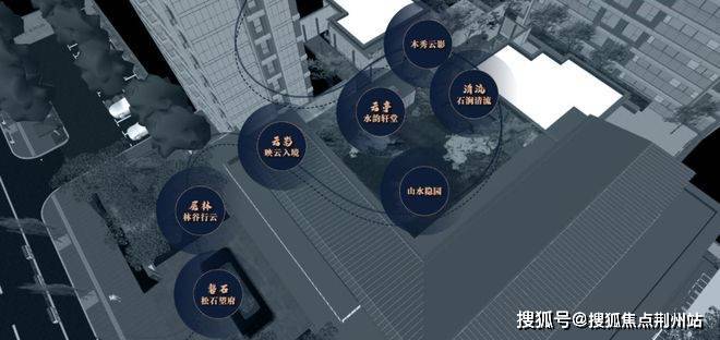 项目参考《姑苏繁华图》为背景,将清代苏州城的繁华盛况融合现代景观元素,提炼出「磐石、层林、云影、云亭、清流、翠台」六大场景,每个区域都展现着独特的设计理念和艺术氛围,并传递出居住环境的生态氛围。