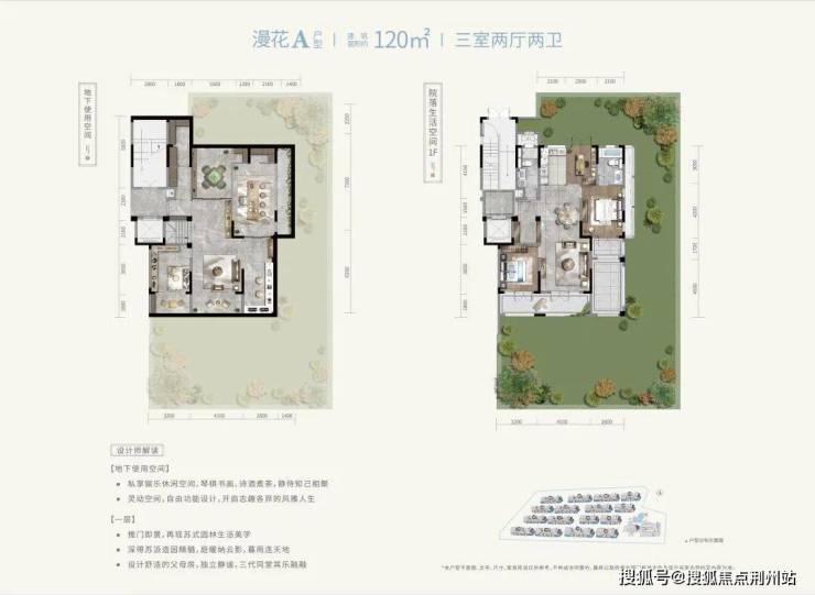 “两个院子,一个喝茶,一个种地”「漫花下叠」空间与中式合院相近,前庭后院,推门即景,主人可以在南院叠山理水,饮茶晒暖,观鱼戏莲叶之乐,品芭蕉夜雨之韵,北院辟出一分菜园种下有机的蔬果;同时,下叠还创新开辟出层高约5.6米的地下挑空灵动场域,无论是作为会客厅、休闲室、观影区都绰绰有余,是与家人、宾朋休闲娱乐之所。