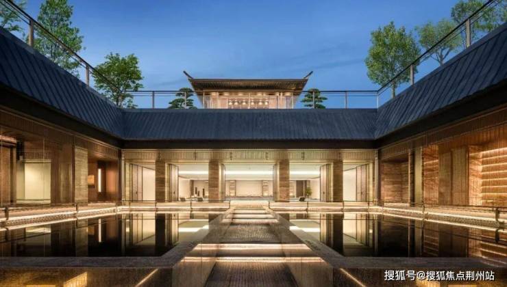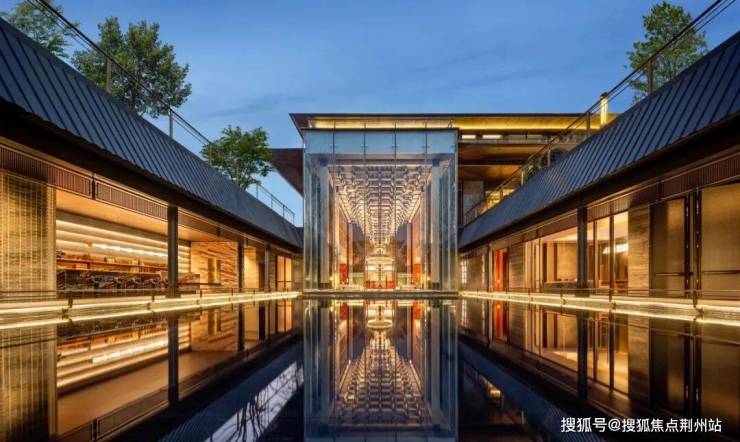 【下沉庭院】简约纯粹的下沉式庭院,以宋代轩拱艺术为核心,借鉴“四水归堂”理念,构筑镜面水景,营造宁静灵魂栖息地。四周瓦面融入雾森系统与水流装置,实现水流的精细化调控,展现流银与洒金的奇妙景观。