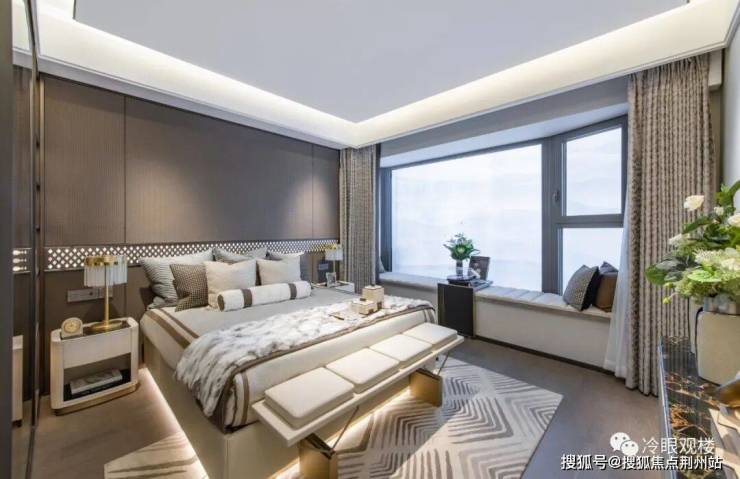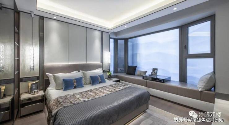 像三个户型的南向卧室,也都是做的钻石窗,配合大飘窗台,有效延展了室内的空间感,增加了观景面。