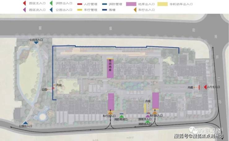 而在西侧,社区也留了一个人行入口,方便业主去隔壁的规划公园。