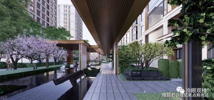 从最东侧的社区大堂,到最西侧的规划市政公园,整个绿城·凤起悦鸣的社区景观规划为“五进”: