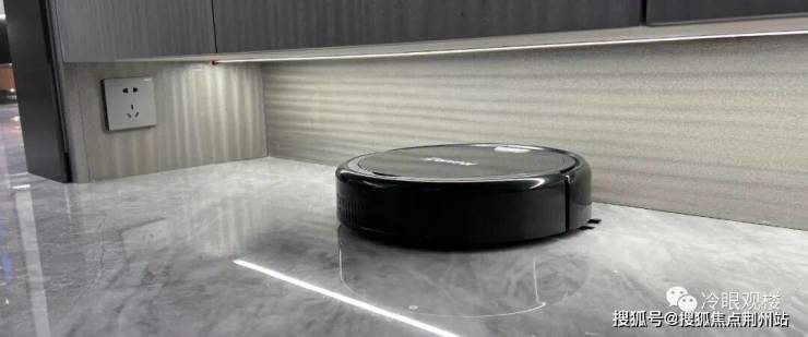 玄关柜底部悬空,留有插座可供扫地机器人充电,换下的鞋子也可放进去。