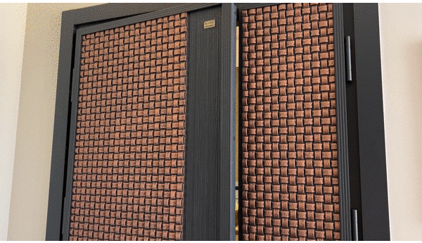 比如门口这扇入户门,表面如编织的纹理、仿铜的质感,搭配智能门锁,将归家礼仪营造到极致。