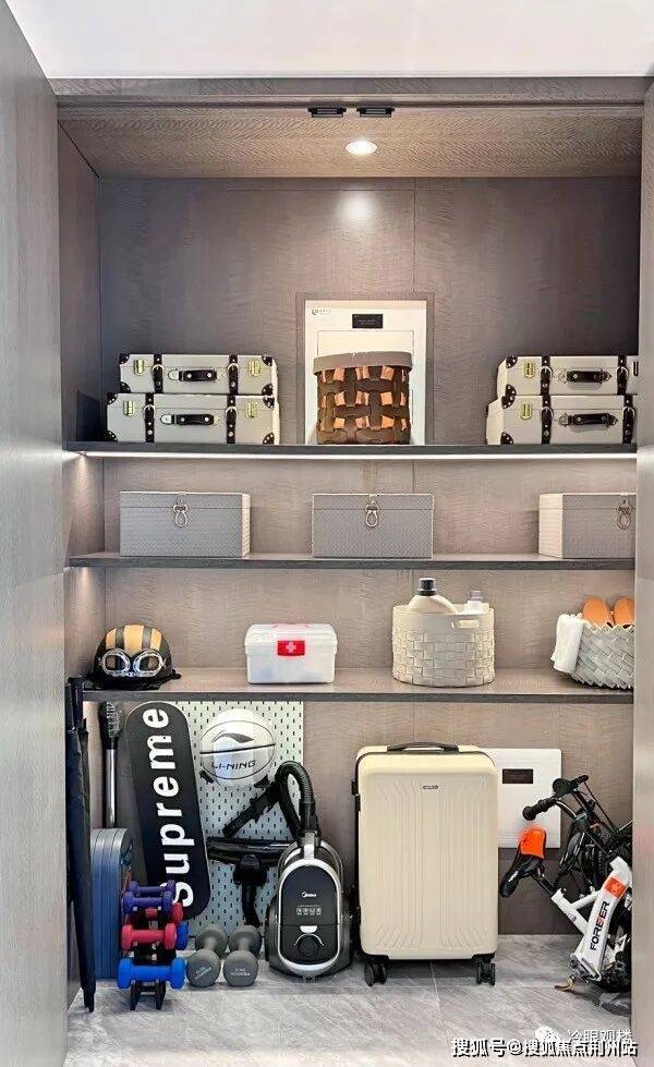 这简直太实用了,内侧靠墙做薄隔板,可收纳些杂物,底部留下的空间正好可以收纳吸尘器、行李箱、折叠自行车、手推车、健身器械等大件杂物。