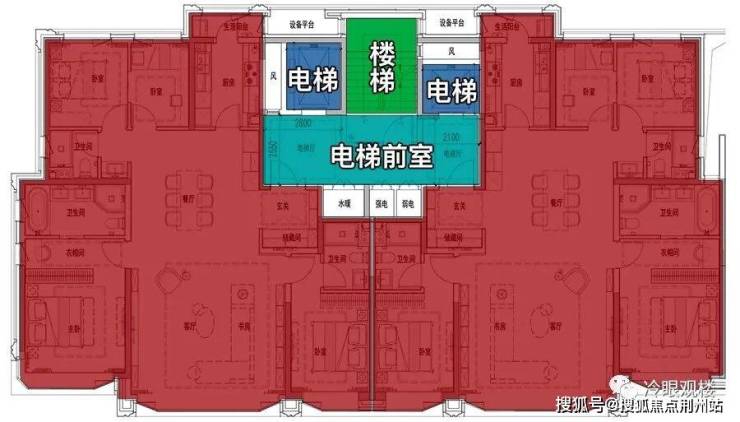 一是卧室不会受到电梯噪音的影响,二是每个户型都能获得一处独立的玄关。