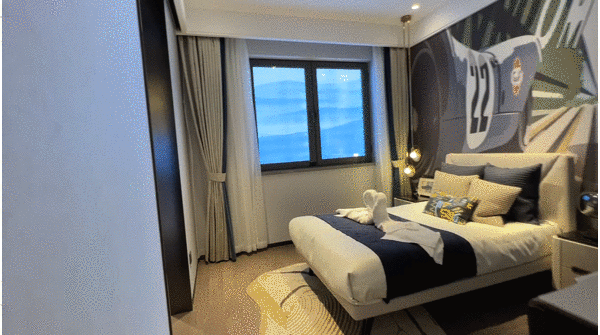 智能化灯光控制,电动窗帘控制,客厅和主卧的面板都是弱电控制款,轻按一下便可实现开关,也是目前酒店客房设计最流行的。