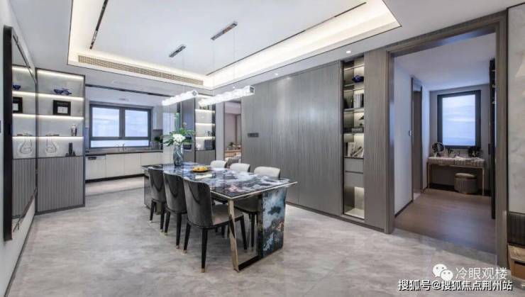 因此,用材上大量运用了金属、玻璃、玉石岩板、木饰面、皮革、烤漆等,配色也更加沉稳、简洁。