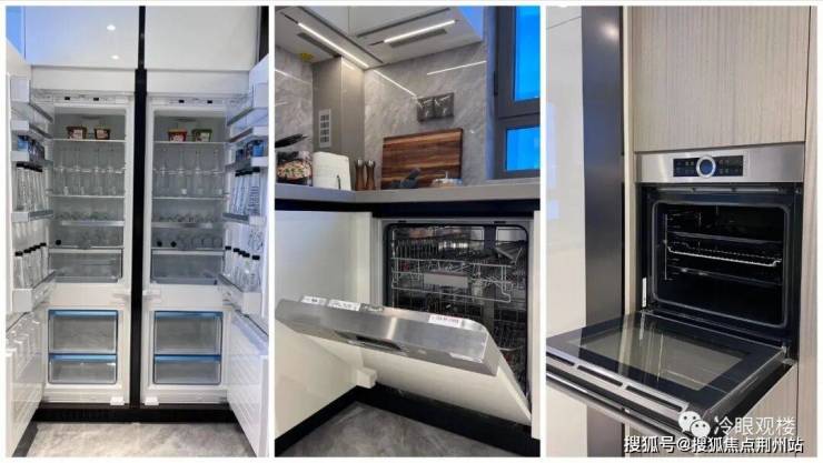 在厨电方面,两款户型都配备了13套内嵌式洗碗机、45升蒸烤箱、嵌入式双冰箱,功能性非常强。