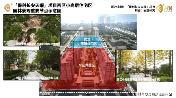 保利也是相当「走运」:华药南新地块尽管被长林路、华药东街、谈北路与体育北大街合围,但纵贯中间的长生街,又把地块一分为二,恰好给了保利做纯粹产品的机会。因此,长生街以西便是小高层(住宅),长生街以东则是洋房。彼此之间,没有交叉。