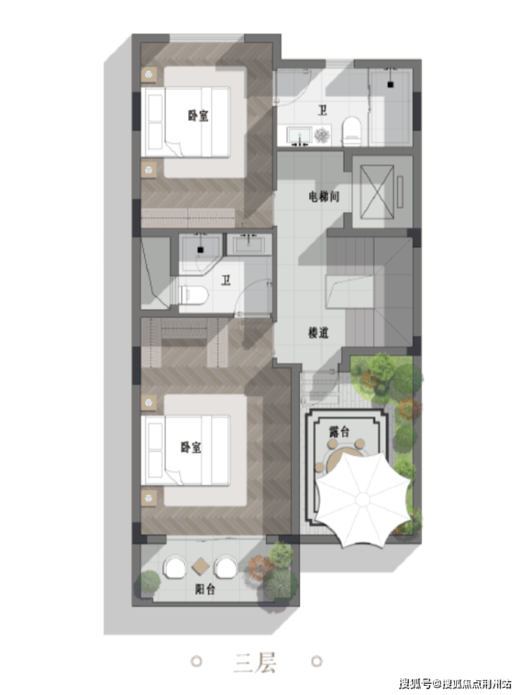三层主卧套房与露台相连,同时预留北侧套房卧室,既可满足现代二孩家庭居住需求,也给予了主卧更多灵活空间感,实现更尊崇的生活天地。