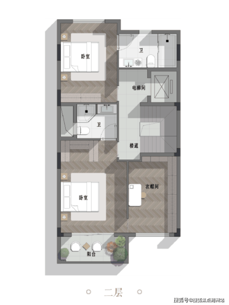 二层南向双开间,融合一体便是带书房或者衣帽间的豪华套房;亦可分别打造成两间卧室,加宽加深的空间尺度妥妥盛放舒适起居。