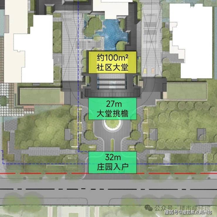 3进式归家礼序:32m庄园入户 | 27m大堂挑檐 | 约100㎡社区大堂