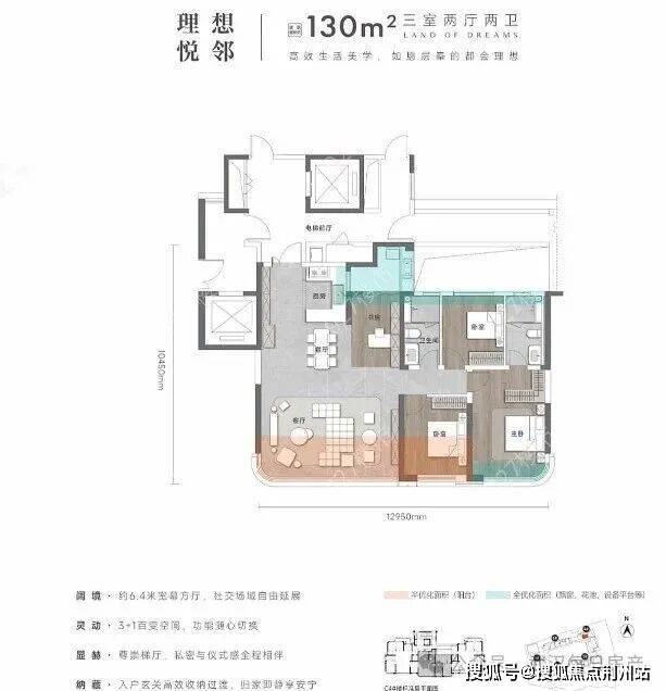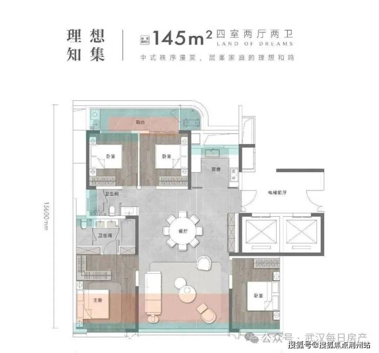 其中,建面约130平3+1房是武汉理想之地起步级户型: