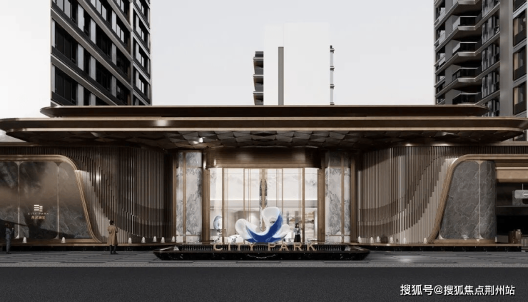 建筑采用现代简约风格,蓝灰玻璃与浅色系铝板交织,香槟色铝板点缀,搭配精致窗框比,与花榕共筑瓯江新封面