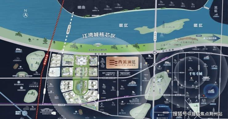 公园环绕,亲近自然 —— 两大绿轴:滨江景观公园带、西部新城中央绿轴公园(规划中),三大公园:黄龙山公园、翠微山公园、江心屿公园。