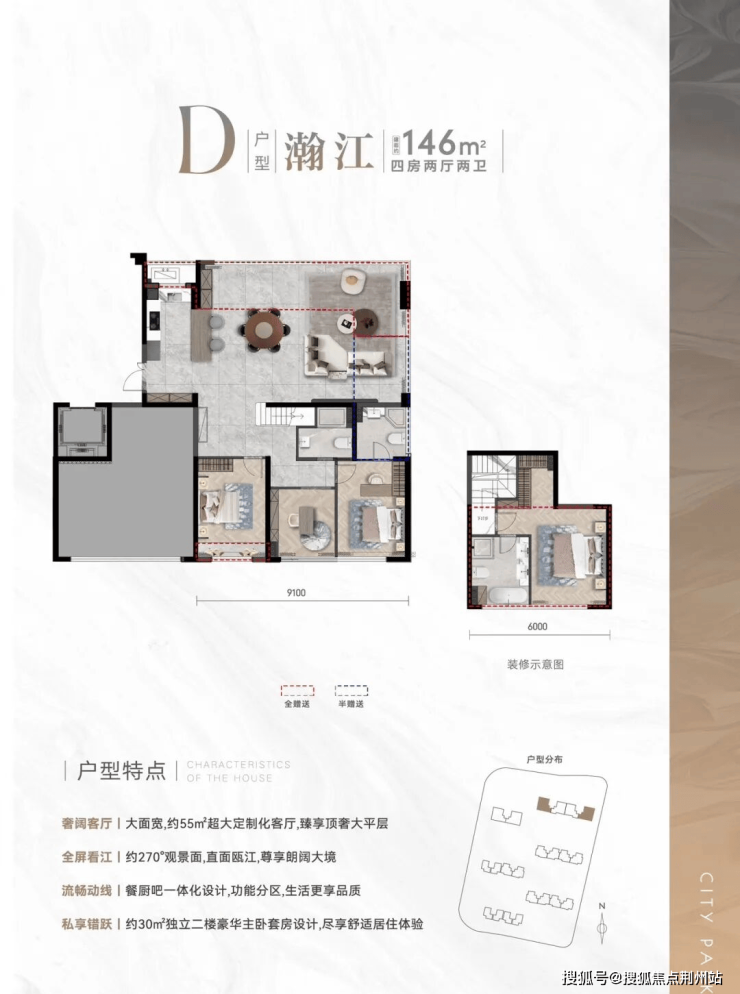 西派澜廷瞰江高层,雄踞温州瓯江畔,首创江景四代住宅。270 度视野尽览瓯江,建筑面积约126 ㎡高层,越级挑战市面大户型;建筑面积约146㎡多样化跃层挑空设计户型空间使用媲美大平层,打破江畔豪宅面积常规,彰显尊贵品味。