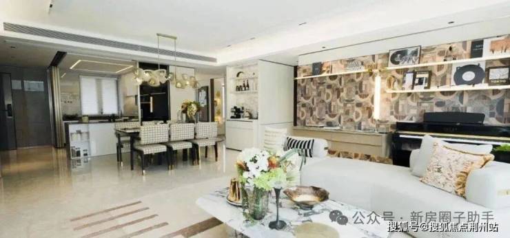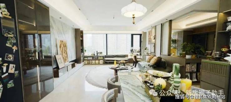 如果没有看样板间门口的水牌,就这样的客厅尺度,说是建面约120平户型,也不会有人质疑。