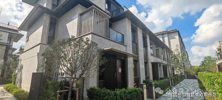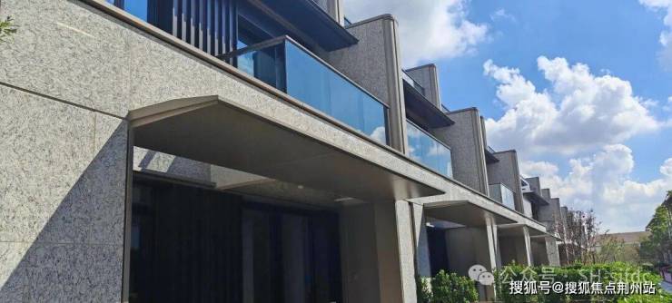 联排建筑立面上进口金钻麻石-全石材铺装搭配咖色的铝板装饰线条,不同凡响的精奢感和厚重的质感,卓尔不群,放眼整个松江,难觅雷同。