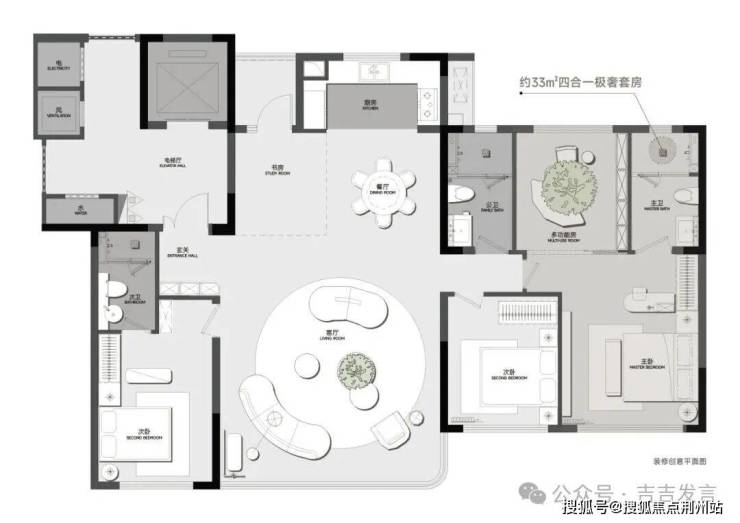 约33㎡四合一极奢套房 | 可拓展五房三卫| 全周期灵动空间