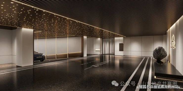 济南首个星空幻影顶地下车库入口、全透光星光顶奢华大堂,殿堂级精奢通透感,臻藏峯层高阶品味。