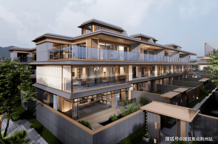 建筑风格:采用新宋式美学,融合传统宋式建筑元素与现代设计,立面线条简洁,搭配浅灰、米白等淡雅配色。