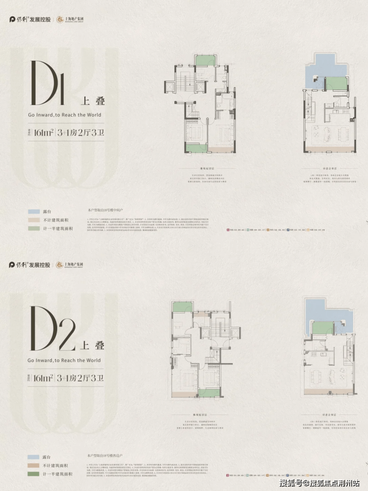保利珺园的产品规划涵盖三条产品线:建面约105-140平方米的墅质洋房、161-190平方米的叠拼墅邸、以及200-285平方米的滨水联排。