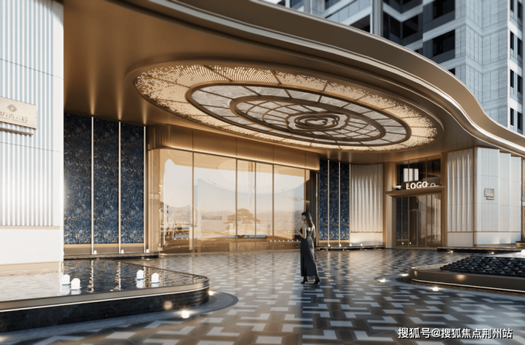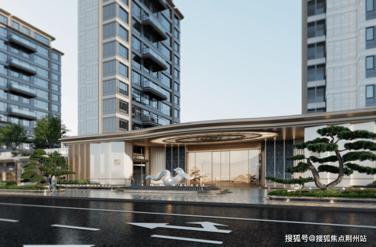 西侧是项目社区门庭,沿街展面高达约58米,呈现出五星级酒店的规格。