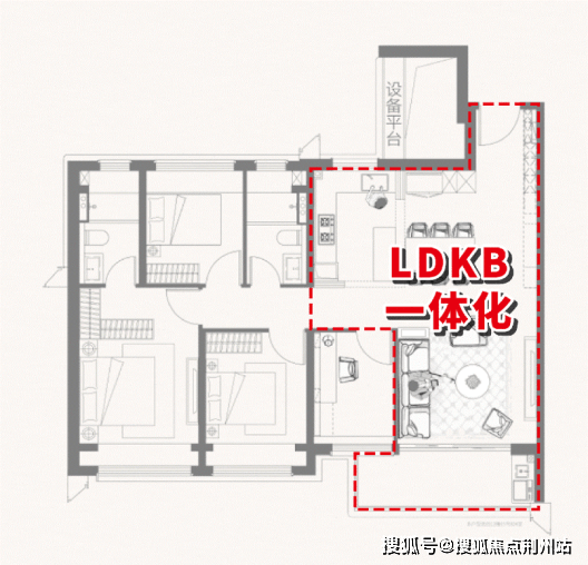 LDKB一体化的设计恰到好处的解决了面积不够的问题。厨房、餐厅、客厅三大空间联通,不仅通透感十足,还构建了一个利用率超高的家庭核心区,在这样高度开放的空间里,即使互不交流,也能保持交流和关注!