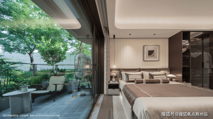 主卧套房化:进深约3米的错层露台与全屋落地窗,共同构成了约20㎡的奢侈主卧空间。这不仅是面积的堆砌,更是将景观、采光、休憩与私密仪式感融为一体的系统性升级。