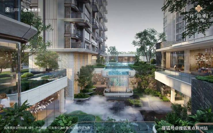 景观方面,丹锦园借鉴“天琴华樟”的层次美学,打造三进归家动线,并将约1800㎡的洄游式双层会所、下沉庭院、架空层与园林有机串联,形成一个功能与景观无限交融的“大美艺境”。