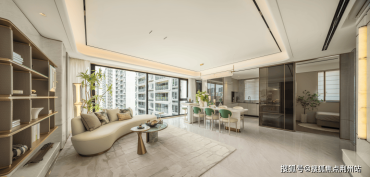 而LDKB一体化设计,则让横厅从“观景与社交空间”升级为“家庭交互核心”:厨房与横厅通过推拉门衔接,开门时,烹饪区与客餐厅形成“动线无界”的整体——厨房备餐时,能随时关注到客厅动向;朋友聚会时,烹饪者无需孤立在厨房,可同步参与客厅的互动;闭合又能有效隔绝油烟与噪音,兼顾“互动需求”与“场域私密”。