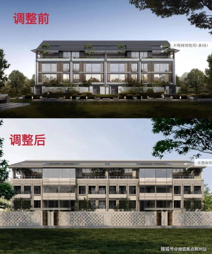 今年6月,项目规划进行一轮调整,主要是外立面造型调整,调整之后的外立面深色金属屋面、较大面积暖白色石材,搭配落地玻璃,风格鲜明