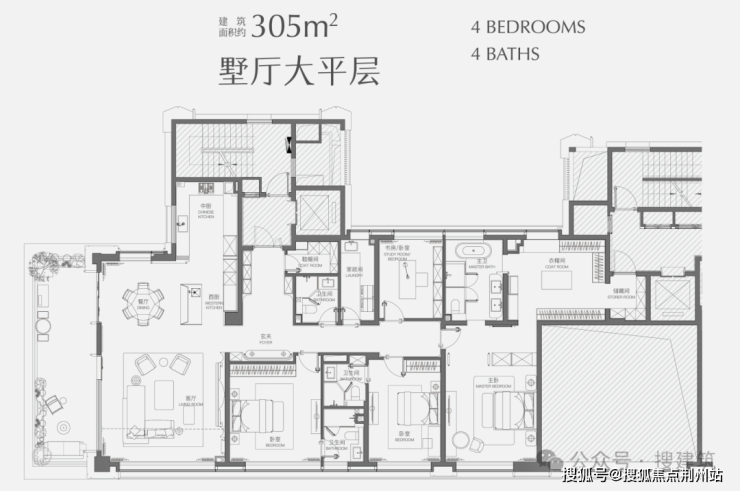 比如其建面约193㎡的产品采用了最新的四代宅设计,将室内外空间打通,通过露台外伸的布局,尽可能放大花园面积,打造南北两个空中花园。