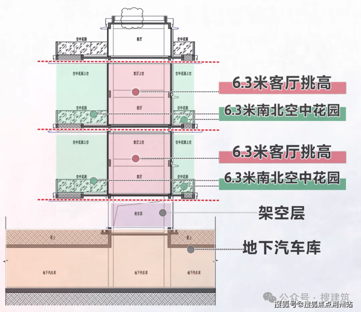 2、缺点:会导致损失一些使用面积,6米通高的玻璃幕墙冬季热损失高,而且悬挑露台+双层通高使倾覆力激增。严寒地区和刚需项目需谨慎。
