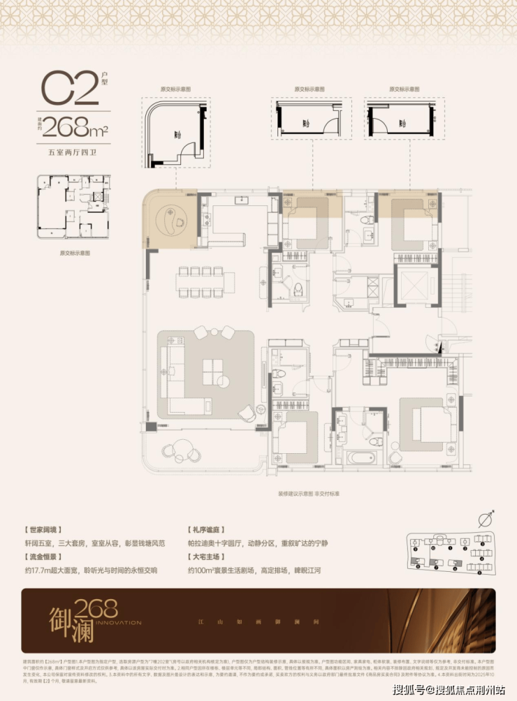 面对如此卓越的天赋,天澜传序府也把最受市场欢迎的建面约265/268㎡放在了6号楼。其中建面约265㎡户型四开间朝南,整个面宽达到了惊人的约18.3m,而建面约268㎡户型更是配合豪宅仪式感,在入口处打造了帕拉第奥十字圆厅,客餐厅边上连着一个以弧形落地窗围合的X空间,从大五房设计,三套房规划,直至专属的独立家政空间,无论是建面约265㎡还是约268㎡都绝对是塔尖最顶级圈层的不二之选。