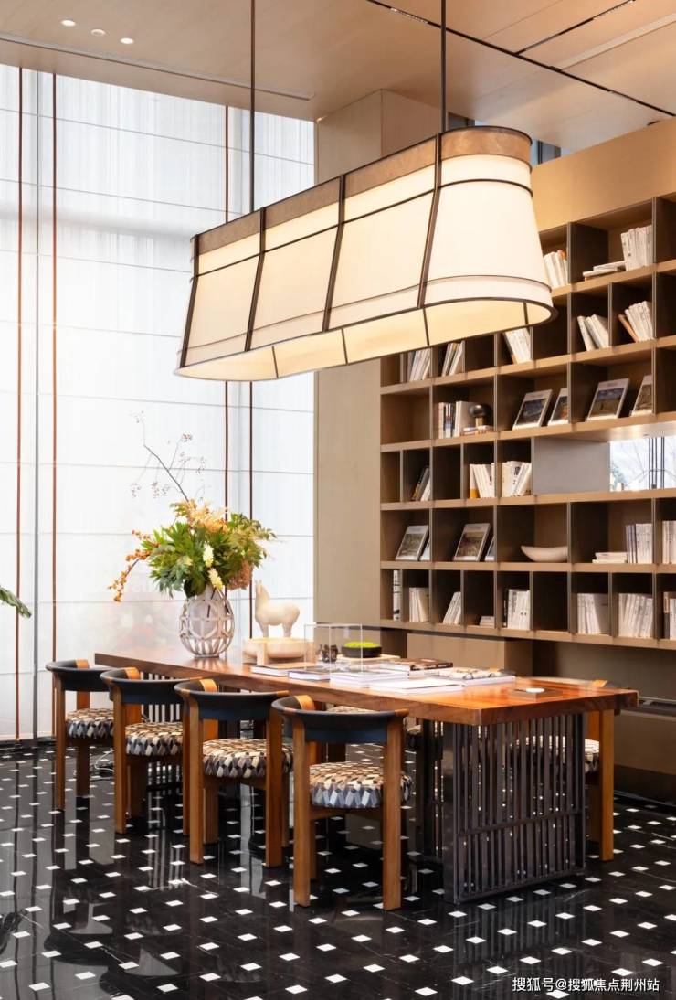 穿过归家大堂,过道一侧延伸出一隅安静的书角。阳光轻柔洒落,映在书架与长椅上,自然而有序。几盆绿植点缀其间,为空间增添一丝生气与松弛感。这里更像是一处生活缓冲区,让日常多一些静心与灵感。