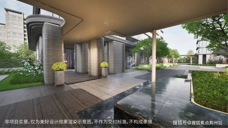 主题架空层与景观一体化设计,在功能、空间、形态上形成互动与互补,内部空间与外部景观良好融合;全域风雨连廊,功能上实现无风雨归家及游园,视线上随着脚步,沿途移步异景,当你归家时犹如穿越绿洲的旅行。(报建为景观廊架,后期存在改造的可能,以实际交付为准)