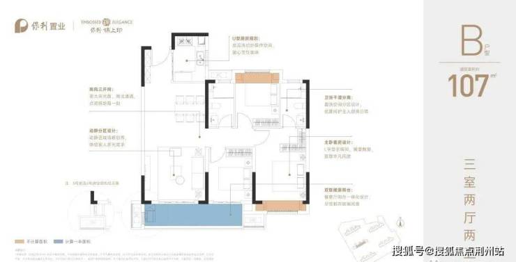 三房两卫,功能性强,同时兼顾了内部空间,相比区域内约100平内的三房两卫产品,舒适度要更高一些。