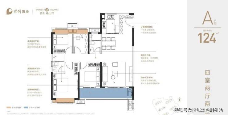 精研现代人居需求,推出的建面约124平四房两厅两卫户型,是市面上建面约140平以上产品才会做的4房设计,是目前武汉市场非常难得的优质户型。