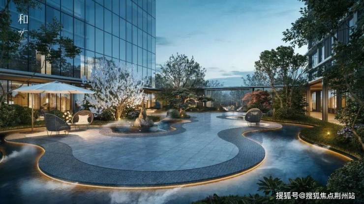 园林景观汲取中式传统园林与东方建筑底蕴,取自珠宝之形意之美,又归于自然的造景艺术,营造一方可望、可行、可游、可居的园林逸境。