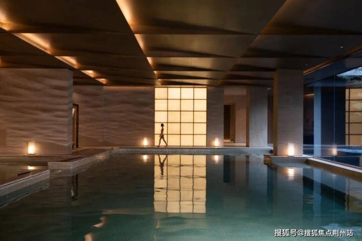 以宁波首个疗愈泳池为例,破天荒的设计了一面大尺度落地窗,与下沉庭院无缝连接,将窗外的山石、松影与飞瀑引入室内。每一次畅游,仿佛流动于山水长卷之中。