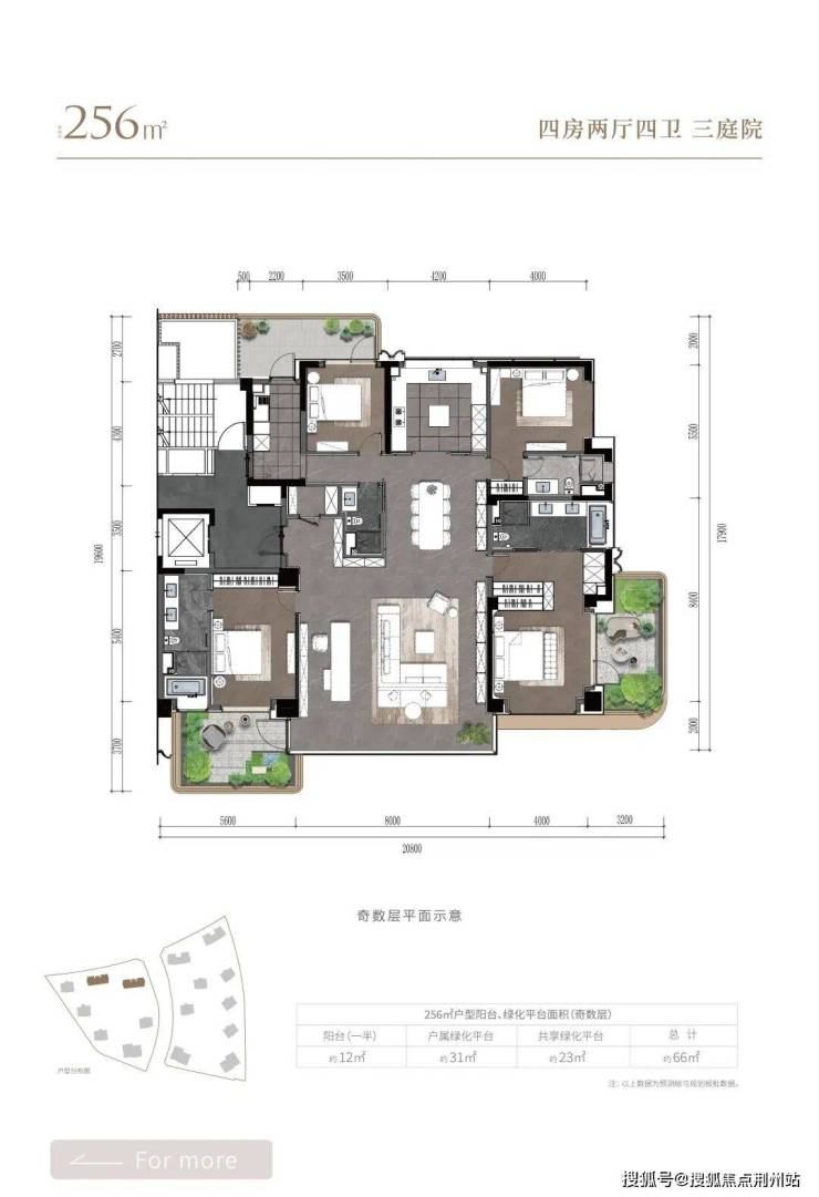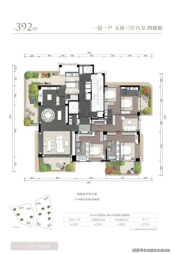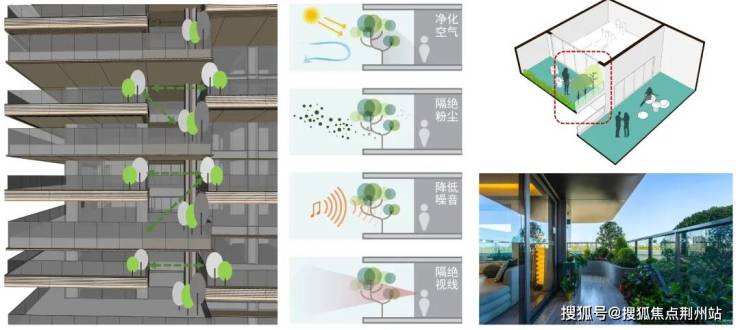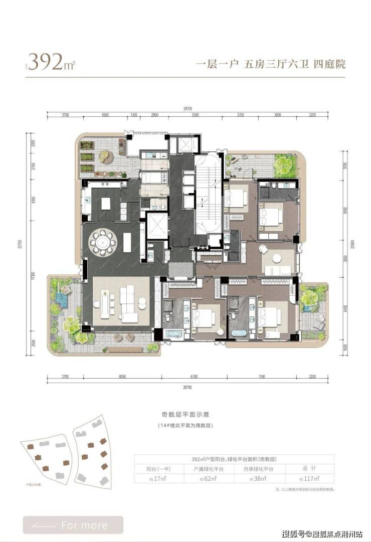 “全环景空中庭院”系统。这并非传统的阳台,而是经过精心设计、功能主题各异的户属空中花园。以约256㎡户型为例,每一户便拥有多达3个空中庭院。随着户型面积提升至约662㎡,庭院数量更可递增至最多7个。