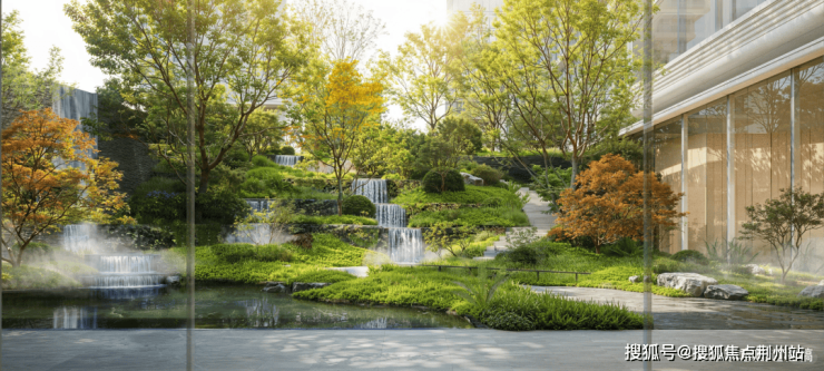 园林的叙事轴线以“一溪一环三轴九境”展开,但核心魅力在于其“立体之丘”的核心场景。这里不再是仅供观赏的绿地,而是串联起下沉式会所、休闲平台、林荫步道的立体生活场。