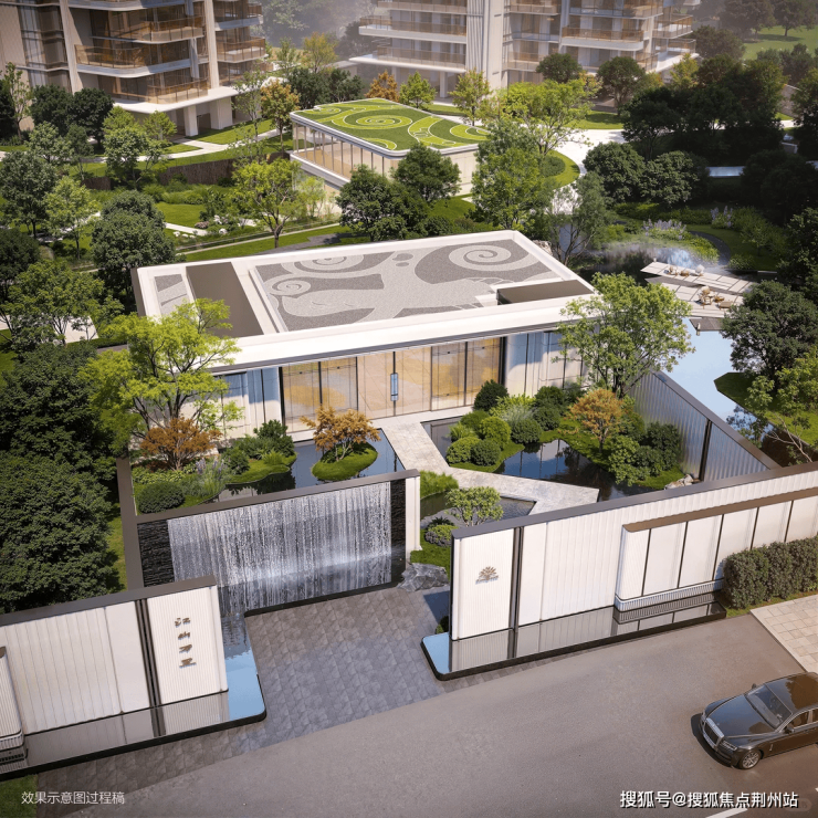 此外,社区主入口借鉴艺术馆与精奢酒店的仪式感,营造“藏而不露”的隐奢意境;专属的“车马院”落客区、贯穿社区的风雨连廊,从归家的第一刻起,便将尊崇感与便捷性贯穿始终。