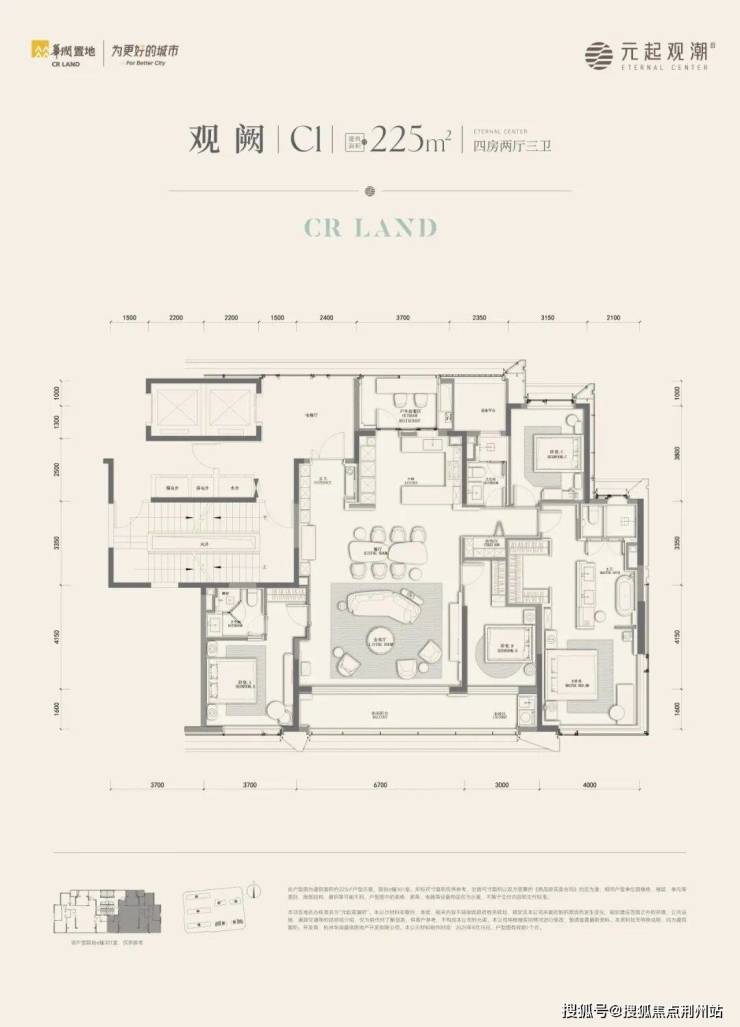225方并没有开放,而从户型图上看,应该是延续了华润在之江的入户光厅,且户型格局为四房三卫,双套房设计。